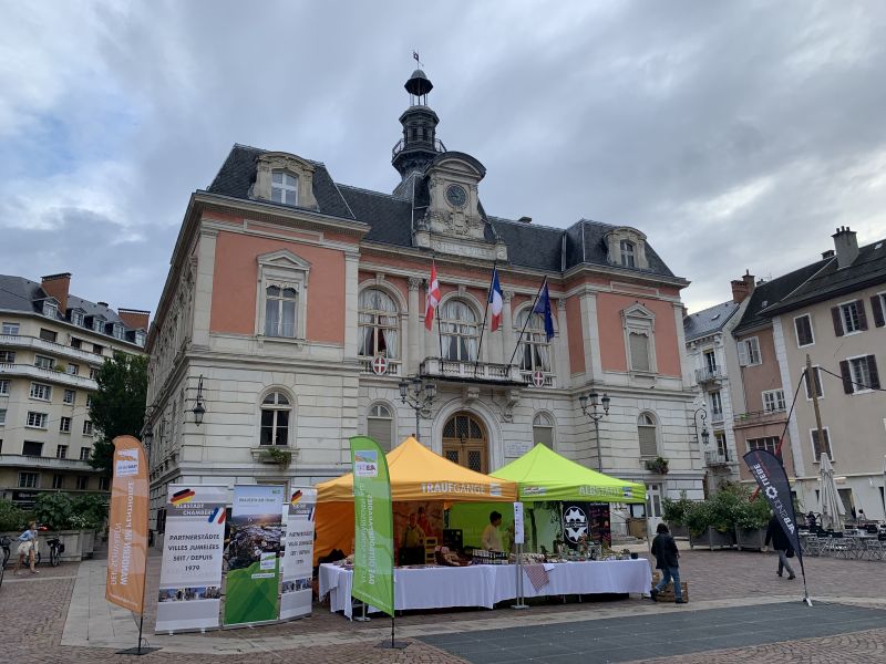 2019 jährte es sich zum 40. Mal, dass Oberbürgermeister a.D. Hans Pfarr und Chambérys damaliger Bürgermeister Francis Ampe die Städtepartnerschaft zwischen Albstadt und Chambéry offiziell besiegelt haben. 40 Jahre in denen auf verschiedenste Art und Weise die deutsch-französische… … Partnerschaft gelebt, … Freundschaft gefeiert, … Projekte gestaltet, … Kulturen gepflegt, … Integration gestärkt und … Zukunft entwickelt wurden. Mit einem fulminanten Festwochenende hat der Auftakt dieses Jubiläums Ende April 2019 in Albstadt stattgefunden. Vom 04. – 06.10.2019 fanden die Feierlichkeiten in Chambéry ihre Fortsetzung. Zahlreiche Bürgerinnen und Bürger der beiden Partnerstädte sowie Vertreter der Stadtverwaltung und der Gemeinderäte haben zusammen mit Quartiergebern, Kollegen und Freunden die Partnerschaft gebührend gefeiert. Die Franzosen hatten für ihre Albstädter Freunde ein umfangreiches Jubiläumsprogramm zusammengestellt. |