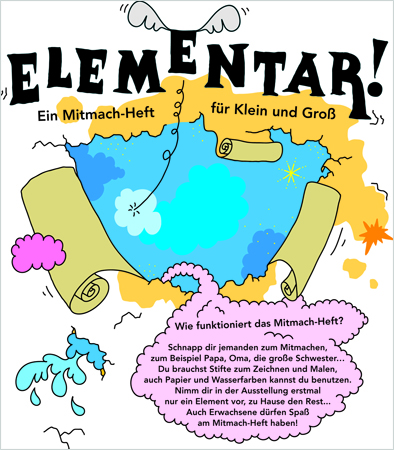 | Das Mitmach-Heft zur Ausstellung ELEMENTAR! ist weiterhin erhältlich: | ||