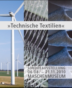 Lokale und überregionale Firmen wurden für diese Ausstellung angefragt, um ein breites Spektrum an außergewöhnlichen Ausstellungsstücken zeigen zu können. Dies ist wahrlich gelungen: Zum Beispiel die Firma Lucem. Sie ist derzeit mit ihrer besonderen Lichtbeton -Technologie in Shanghai auf der Weltausstellung 2010 vertreten – und ab August auch mit einem ihrer besonderen Leuchtwaschtische im Maschenmuseum. Was an einem lichtleitenden Betonwaschtisch textil sein soll? Durch fein verteilte eingegossene Glasfasern wird die gewünschte Lichtleitung, die nach Bedarf auch noch farbig moduliert werden kann, erst möglich. Doch nicht nur Dekoratives findet sich unter den Exponaten der spektakulären Schau. Auch überaus Nützliches wie zum Beispiel der Teil eines Rotorflügels von einer Windkraftanlage ist hier zu sehen. Die verstärkten Textilfasern tragen mit ihren spezifischen Eigenschaften maßgeblich zu Effizienz und Zuverlässigkeit der Rotoren unter größter Belastung bei. |